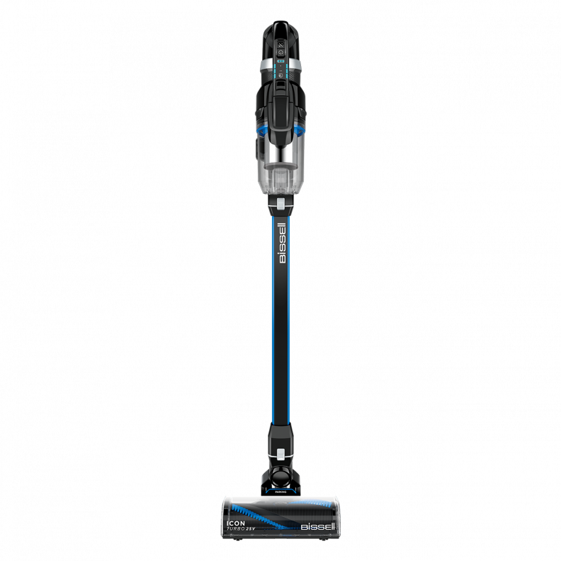 Az ICON TURBO™ 25V Li-Ion vezeték nélküli porszívó tökéletes megoldást nyújt az aktív életet élő családok otthonaiba. 400 W teljesítményű digitális motor + Turbo Boost funkció extra erőteljes tisztítást biztosít akár 50 perces üzemidővel a teljes porszívózásért alacsony teljesítményű üzemmódban, míg a szabadalmazott Tangle-Free Brush Roll gubancmentes kefe megakadályozza a hajszálak feltekeredését a kefére tisztítás közben. Az ICON TURBO™ továbbfejlesztett szegélytisztító* funkciója teljes szélességű beszívást nyújt a lakás sarkainak és szegélyeinek egyszerű tisztításához. Rugalmasan használható kézi vagy nyeles porszívóként, hogy eltávolíthassa a port és szennyeződéseket kárpitozott és egyéb bútorairól. Az erre tervezett szennyeződéstároló rendszer elkülöníti a törmelékeket, így nem kell a takarítás utáni tisztítással bajlódnia. A fényes LED-lámpa azokat a szennyeződéseket is megvilágítja, amelyek más porszívóval nem láthatók.