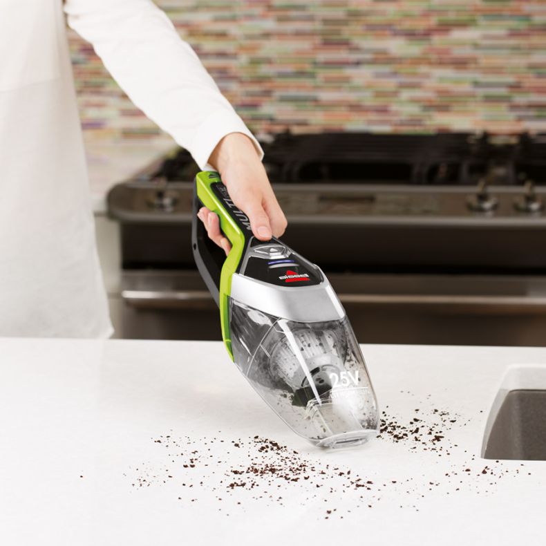 A BISSELL® MultiReach TM Ion XL 25.2V kis súlyú, vezeték nélküli porszívó egyszerű és intuitívan használható, egyetlen töltéssel jelentős, 50 perces üzemidővel. Bőséges idő egy átlagos ház alapos kitakarítására. A beépített morzsaporszívóval távolítsa el a port, vagy takarítsa fel a száraz ételmaradékokat (például gabonaféléket, rizst), továbbá a szennyeződéseket a magasabb felületekről, például munkalapokról és polcokról.