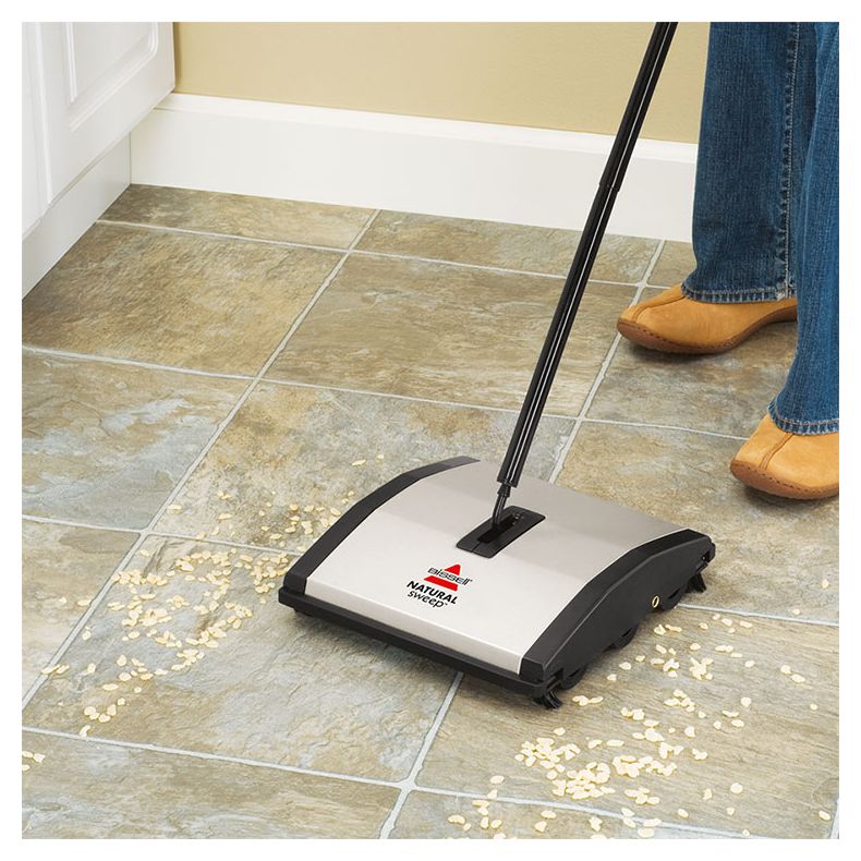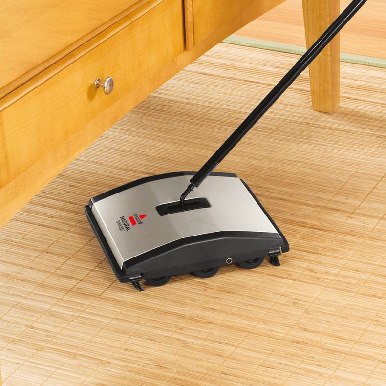 Kis súlyú és kompakt, a BISSELL Natural Sweep seprőgépet úgy terveztük, hogy hatékonyan tisztítsa a szőnyegeit és keménypadlóit a rendszeres porszívózások között. A seprőgép 2 fő kefehengerrel és 4, a talpa sarkaiba helyezett kis kefével rendelkezik, hogy a széleken és sarkokban lévő szennyeződést is megragadja. A 6 kerekes rendszer automatikusan állítódik mindenféle padlótípus optimális takarításához