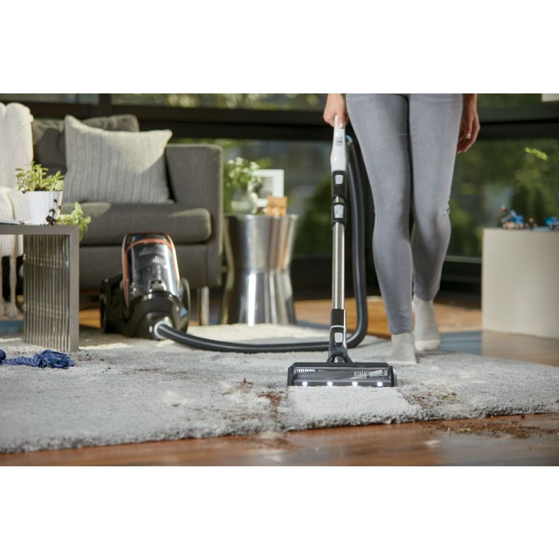 A motoros, gubancolódásmentes körkefe hatékonyan összegyűjti a haj- és szőrszálakat és a letapadt szennyeződéseket, miközben megakadályozza a hajszálak feltekeredését. A szabadalmaztatott Multi-Cyclonic Spooling System erőteljes szívást biztosít és higiénikus ürítőrendszerrel rendelkezik. Így könnyedén eltávolíthatja a szennyeződést a tartályból anélkül, hogy bele kellene nyúlnia, és kezei tiszták maradnak. A motoros padlófej LED-eket tartalmaz, melyeknek köszönhetően könnyedén észreveheti a bútorok alatt vagy más, nehezen elérhető helyeken a szennyeződést. Az ergonomikus, kétállású fogantyú lehetővé teszi a maximális irányíthatóságot, amikor a padlók, a bútorok alatt vagy a padlófelületek felett végez tisztítást. A motoros fej egyszerűen rögzíthető a fogantyúhoz, hogy a haj- és szőrszálakat és a letapadt szennyeződéseket kényelmesen feltisztítsa a lépcsőkön és más felületeken. Ezek a funkciók együttesen alkotják a fejlett hajkezelő rendszerünket, amely eltávolítja a letapadt haj- és szőrszálakat és szennyeződéseket anélkül, hogy a porszívót gyakran kellene tisztítani.