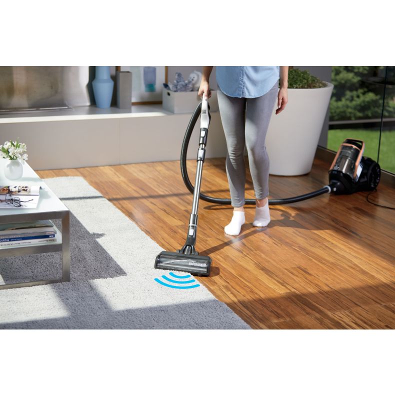 - A gubancolódásmentes körkefével ellátott motoros padlófej, hatékony tisztítást biztosít anélkül, hogy a takarítás után el kellene távolítani a szőrt.